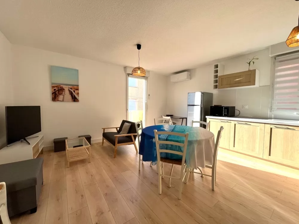 NOUVEAUTE EN EXCLUSIVITE - Cimm Immobilier vous présente ce très joli T3 de 46m² habitable situé au premier et dernier étage d'une petite copropriété en plein centre de Valras-Plage et proche de la mer. Entièrement refait, il est composé d'un séjour avec cuisine entièrement équipée, de deux chambres, d'une salle de bain, d'un toilette et d'un balcon.