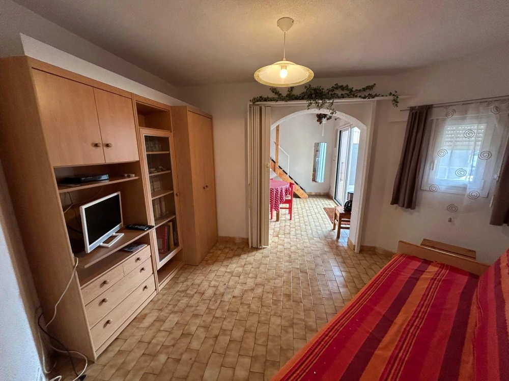 - Au rdc : Séjour avec cuisine ouverte et salon attenant, une chambre cabine, WC séparé